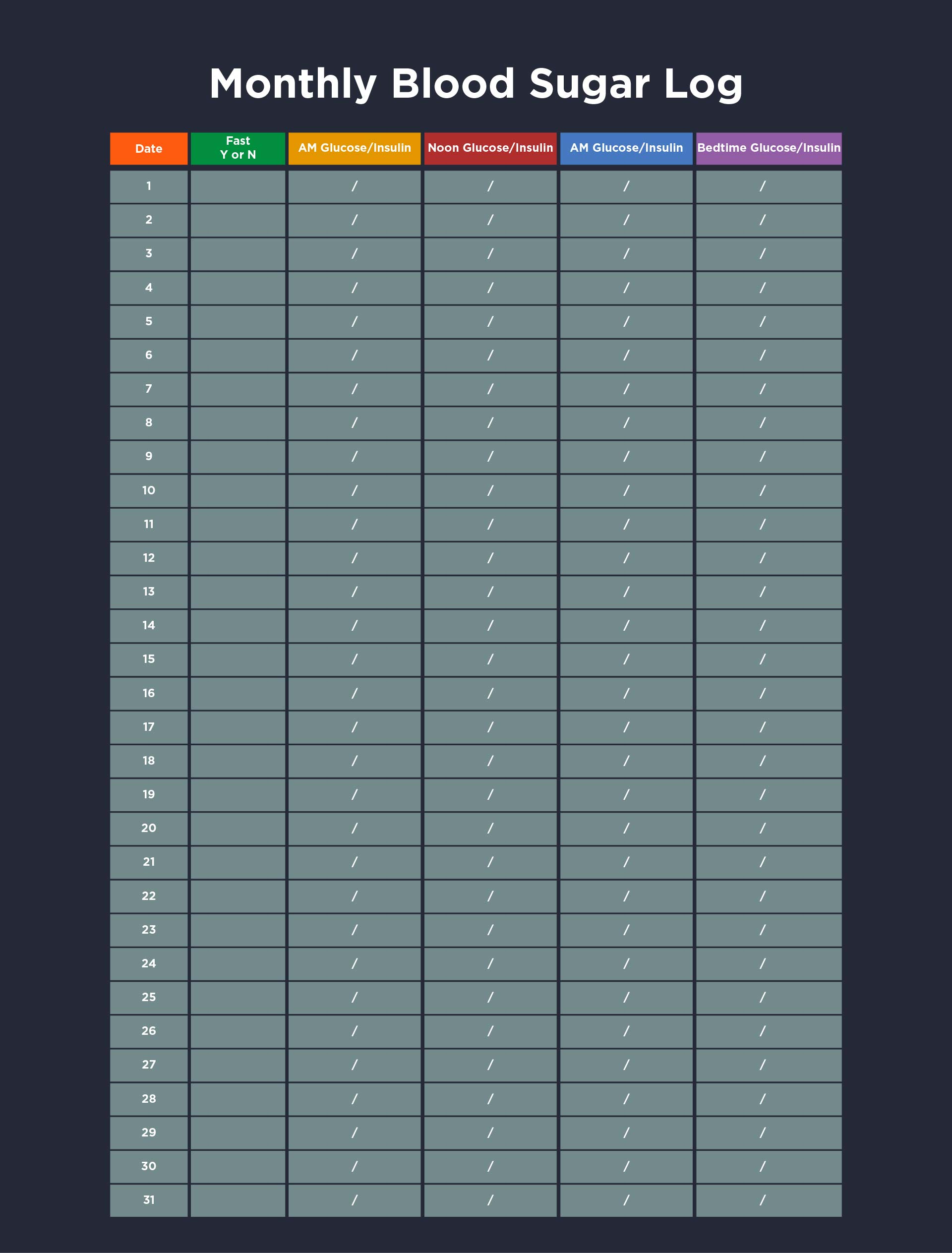 Free Printable Blood Glucose Log Sheet