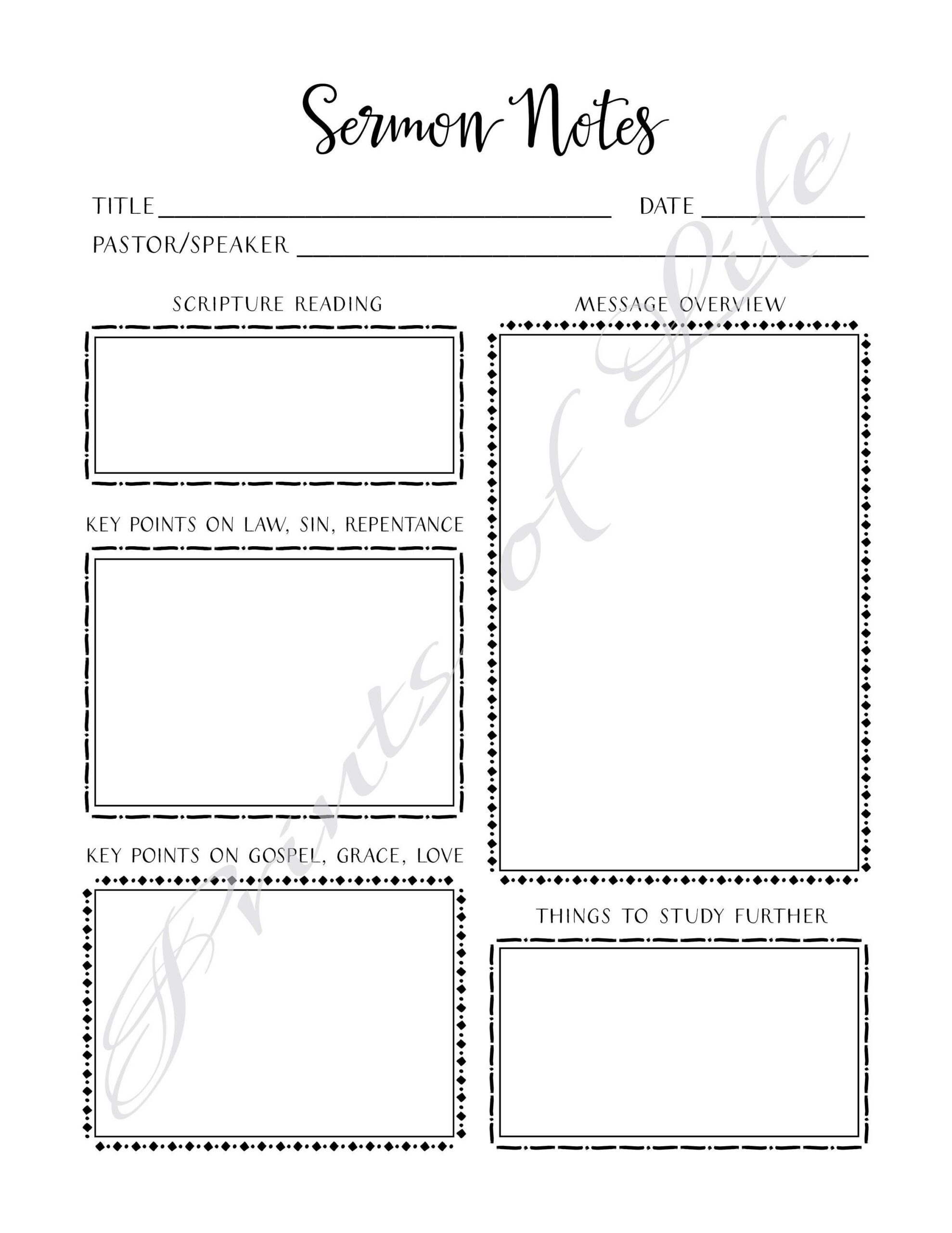 Download and Print Free Printable Sermon Notes For Adults