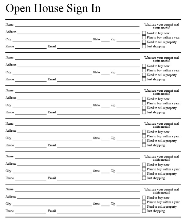 Open House Printable Sign In SheetOpen House Printable Sign In Sheet